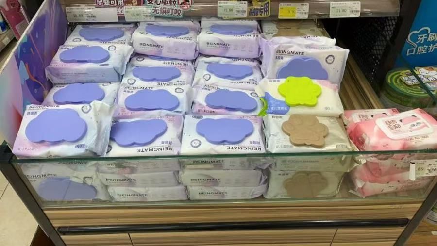 8月26日,杭州萧山区某生活超市里贝因美纸巾产品售卖现场