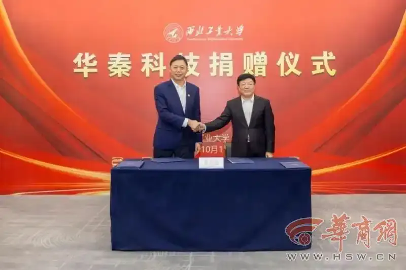 在西北工业大学建校87周年之际,华秦科技向学校捐赠1亿元,专项用于支持学校青年人才队伍建设与材料学科发展等。西工大校党委书记李言荣,华秦科技董事长、西工大材料学院1977级校友折生阳出席捐赠仪式并致辞。华秦科技首席科学家、材料学院周万城教授,副校长张开富参加捐赠仪式。捐赠仪式由校长助理王宇波主持。