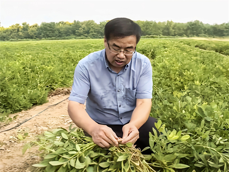 资料照片:乡村产业指导员李峰在查看花生长势。新华网发 淮北市委组织部供图