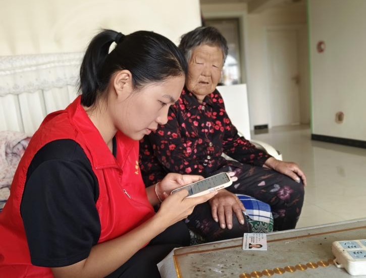 在内蒙古自治区鄂尔多斯市准格尔旗,服务小队上门为老年人办理医保代缴登记。新华社发