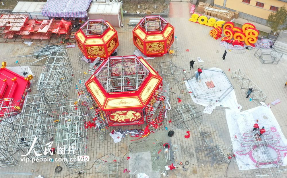2025年12月21日,在河南省三门峡市2025年12月21日,在河南省三门峡市陕州地坑院景区,工人在制作大型彩灯。陕州地坑院景区,工人在制作大型彩灯。