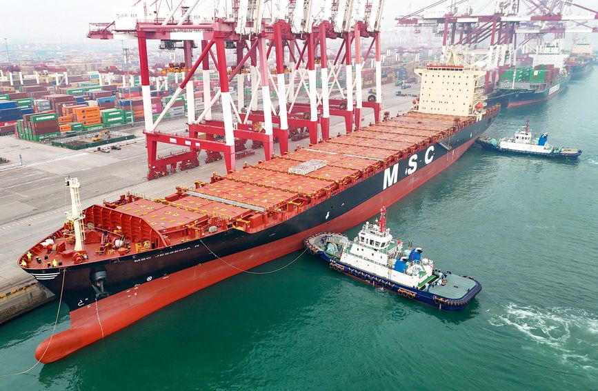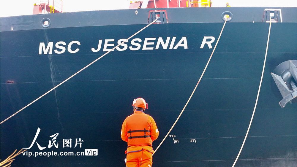 2026年1月4日,澳洲直航新航线首班船舶靠泊山东港口青岛港,标志着该港2026年首条外贸新航线正式开通。张进刚摄(人民图片网)