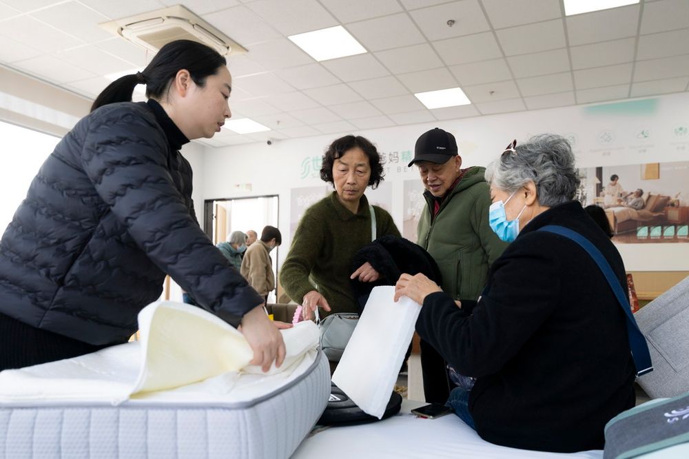 1月15日,顾客在上海银发商店咨询适老化产品。