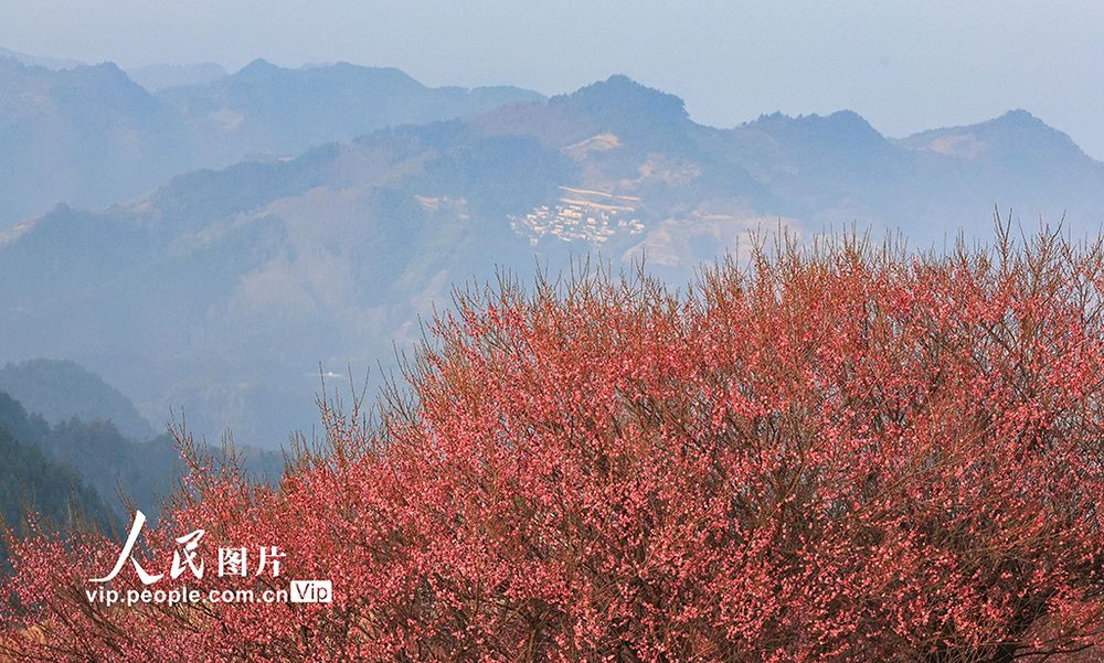2026年1月18日,安徽歙县霞坑镇石潭村,梅花绽放,幽香浮动,吸引游客前来赏花拍摄。郑宏摄(人民图片网)