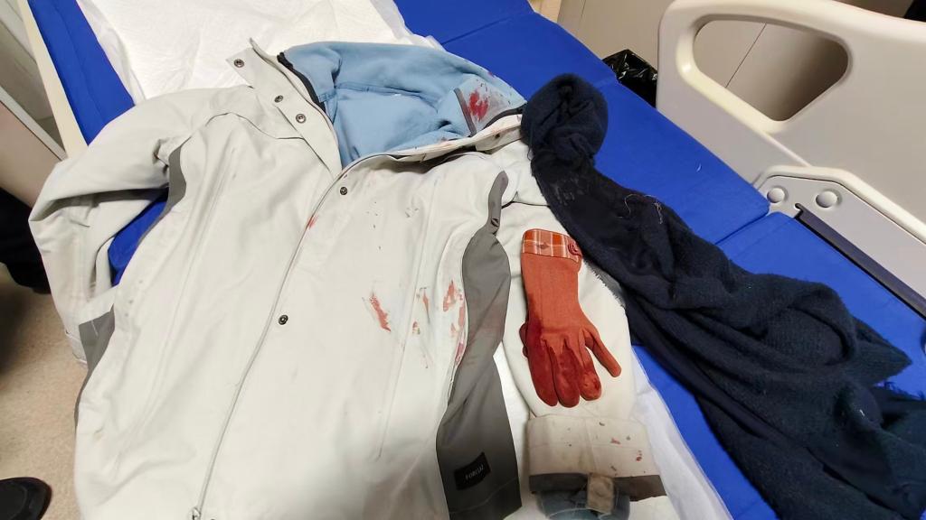这是王妙丽被血浸透的手套和衣服。新华社发