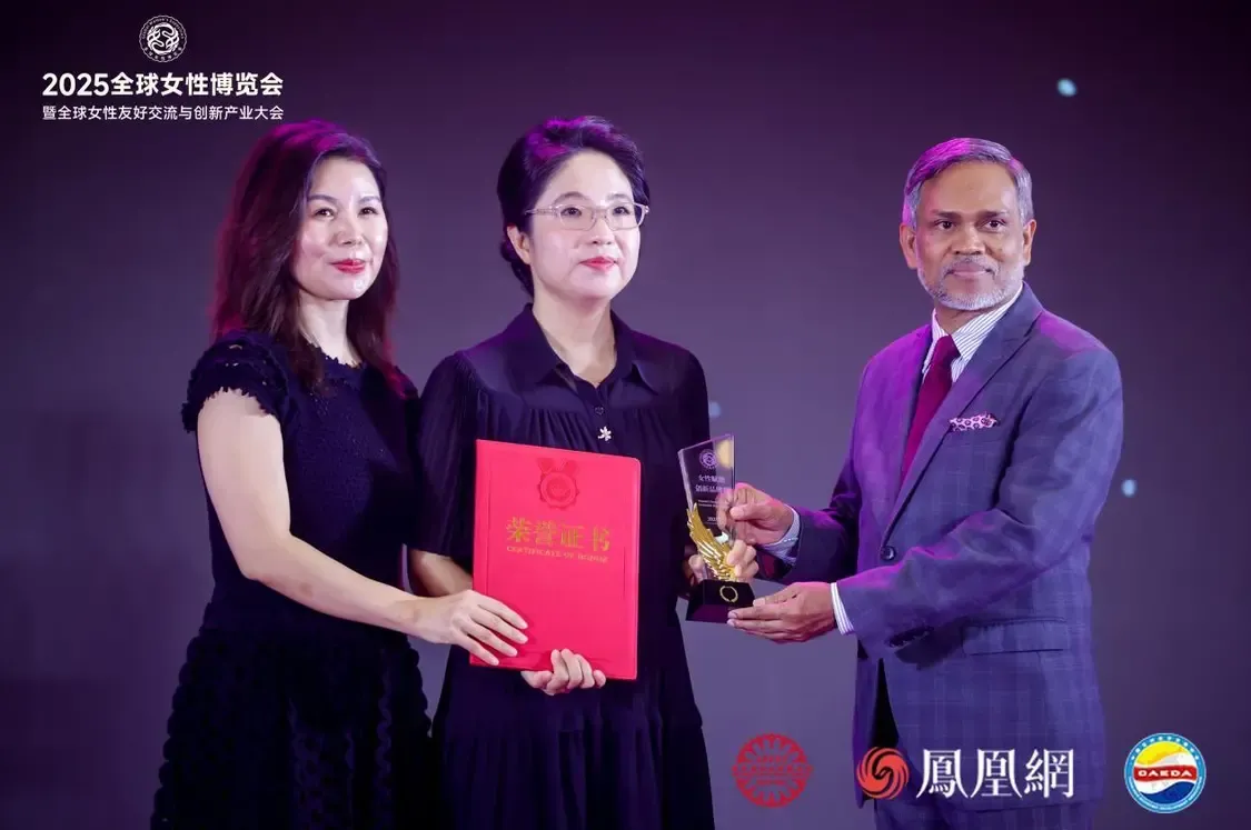 2025年9月9日晚,2025全球女性博览会暨全球女性友好交流与创新产业大会在杭州隆重举行。为在全球范围内推动更多女性相关产业发展,本次活动颁发涵盖产业、科技、公益、教育、文化等多领域的优秀案例。活动现场,东阳光妍·雅娜薇图获颁女性赋能创新品牌奖。