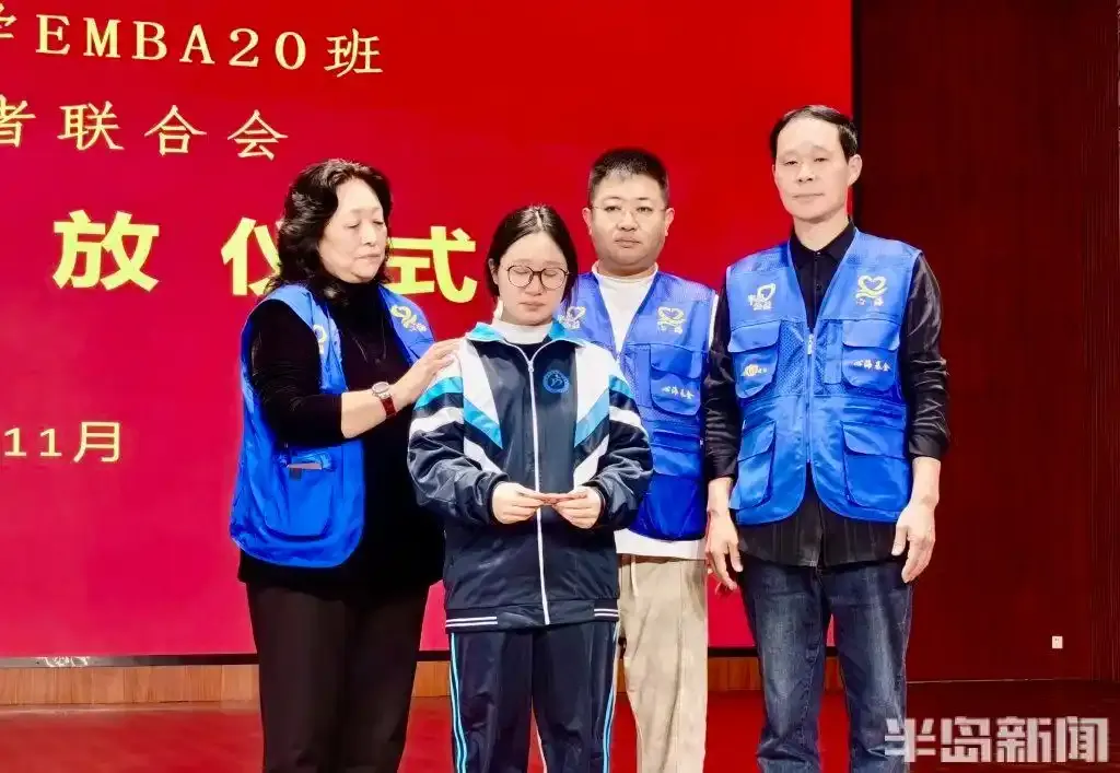 本次助学活动聚焦学子核心需求,精准传递关爱暖意。资金帮扶方面,爱心力量精准落地。此次活动,青岛心海公益资助20名学生,发放助学金4.4万元;中国海洋大学EMBA20班定向资助10名学生,捐赠助学金2.2万元,为孩子们的学费、生活费等学业开支筑牢保障。