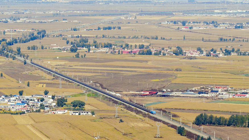 12月8日,重载群组列车在试验开行(无人机照片)。
