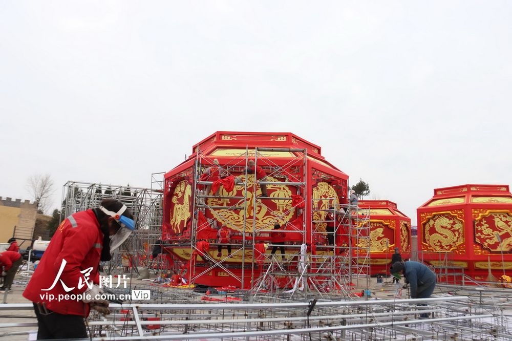 2025年12月21日,在河南省三门峡市2025年12月21日,在河南省三门峡市陕州地坑院景区,工人在制作大型彩灯。陕州地坑院景区,工人在制作大型彩灯。