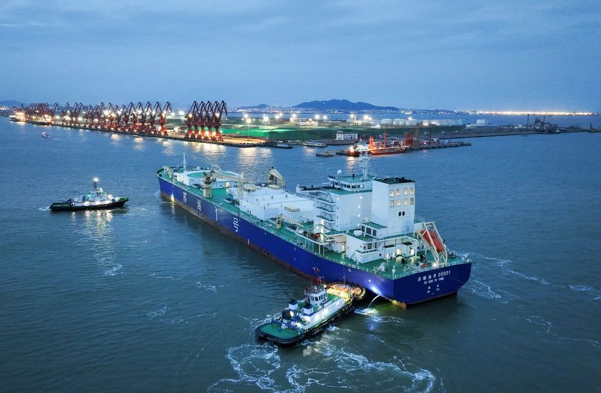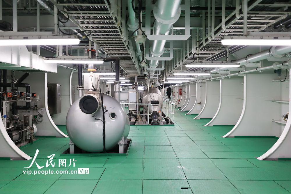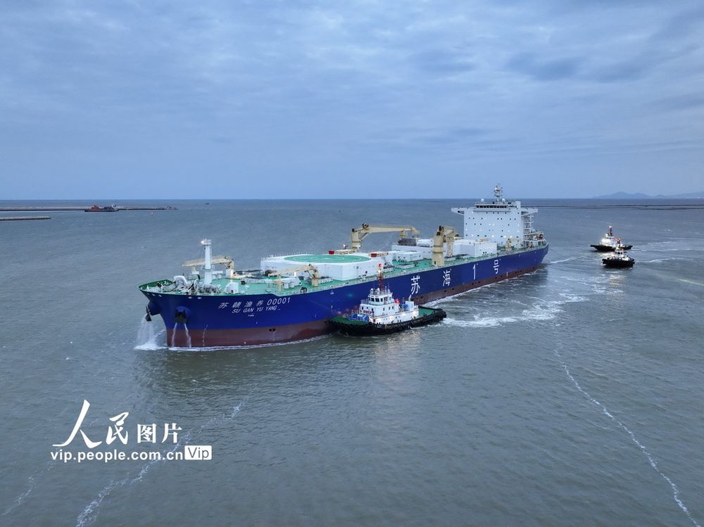 据悉,这艘集“设计、建造、运营”全链条自主创新于一体的深远海养殖工船,由中国水产科学院渔业机械仪器研究所设计、广州黄埔文冲船厂建造,船长249.8米,养殖水体达8.3万立方米,设计年养殖能力约8000吨,为全产业链的稳定运转提供了坚实的产能支撑,让我国海水三文鱼产业具备稳定、连续、规模化的国产供给能力。司伟摄(人民图片网)