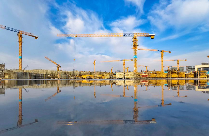2025年12月23日,浙江省宁波奥体中心二期主体育场建设工地现场,建设工人抢抓良好天气,安全有序推进工程进度。胡学军摄(人民图片网)
