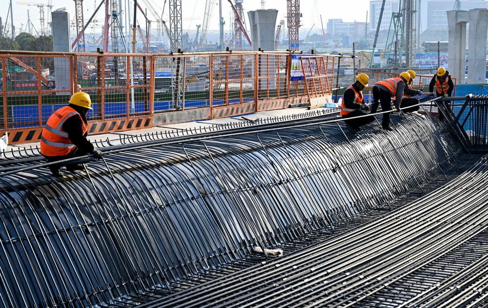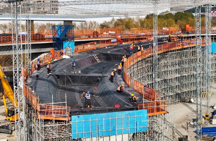 据介绍,该工程道路设计采用主辅路双向6车道形式,主路为城市快速路,辅路为城市主干路。目前,桩基建设完成95%,墩柱和承台建设均已过半,现浇梁陆续完成7联。新华社记者 季春鹏 摄