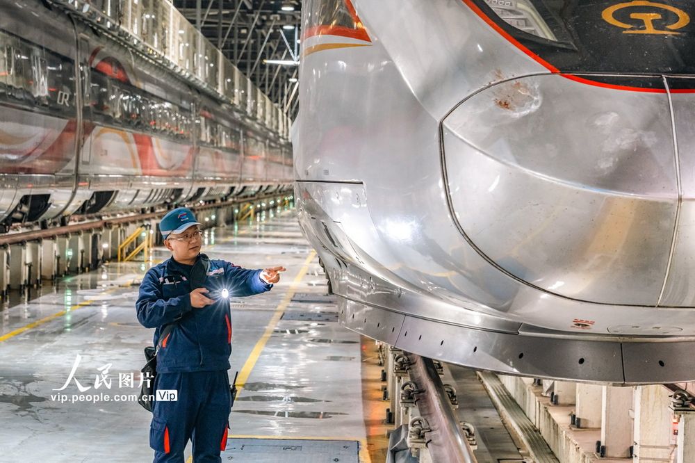 2026年1月12日,郑州动车段动车组机械师正在对动车组走行部进行检查。2026年1月12日,郑州动车段动车组机械师正在对动车组走行部进行检查。2026年1月12日,郑州动车段动车组机械师正在对动车组走行部进行检查。